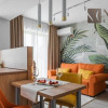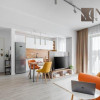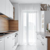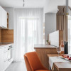 Bucataria contine frigider, masina de spalat rufe, masina de spalat vase, plita, cuptor si hota.